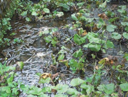 Water temperature is extremely important for the cultivation of wasabi, which is more suited to cool climates; higher temperatures adversely affect growth. Water temperatures above the appropriate range are thought to suppress rhizome development and increase the incidence of pests. In recent years, stalk (Fig. 1) and soft rot (see Note 2) have increased in the Shimo-Ichida (see note 1), which is distant from water sources and has experienced severe fluctuations in water temperature. Damage caused by soft rot and other diseases is also increasing in wasabi fields at lower altitudes and higher temperatures.