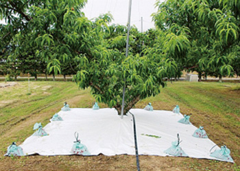 Fig. 2 Moisture-permeable mulch-sheet under peach tree canopy.