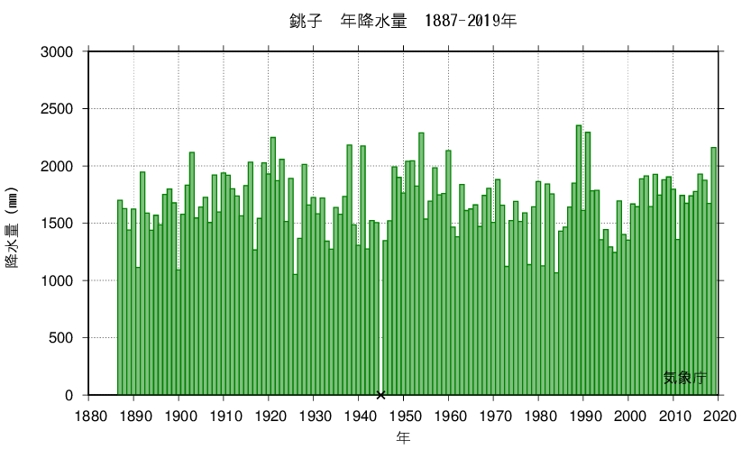 The graph shows the annual variation in the number of days of the year when the daily maximum temperature is 30°C or higher (midsummer day).