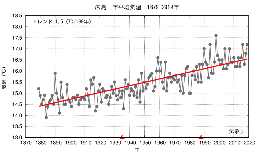 ※ This site shows the trend of long-term changes (red line in the figure) along with the observed values.