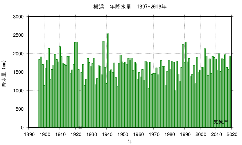 The graph shows the annual changes in precipitation in the past.