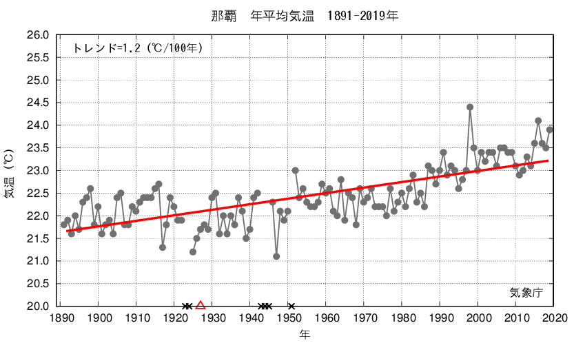 ※ This site shows the trend of long-term changes (red line in the figure) along with the observed values.