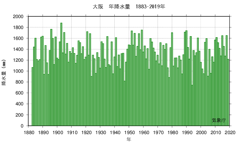 The graph shows the annual changes in precipitation in the past.