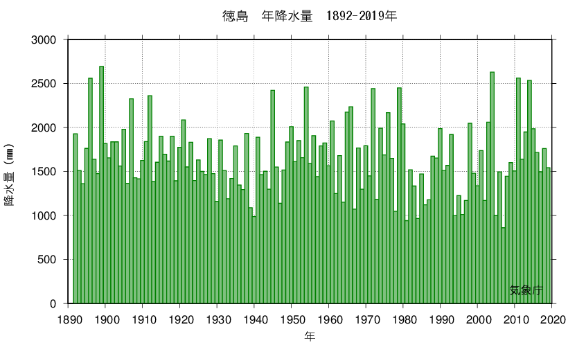The graph shows the annual changes in precipitation in the past.
