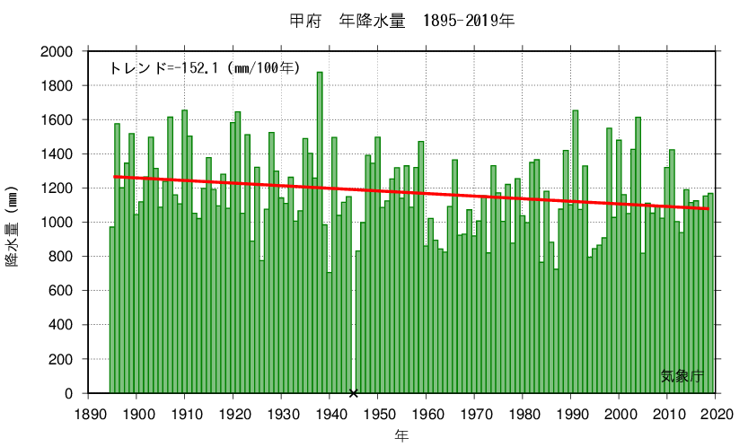 The graph shows the annual changes in precipitation in the past.