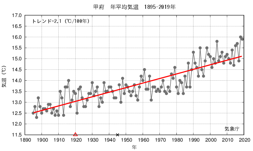 ※ This site shows the trend of long-term changes (red line in the figure) along with the observed values.