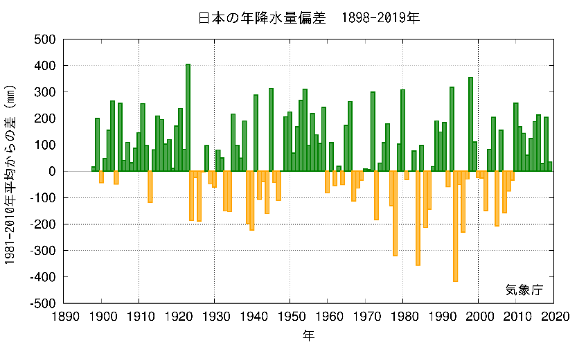 The graph shows the aging of the past annual precipitation deviations across the country.