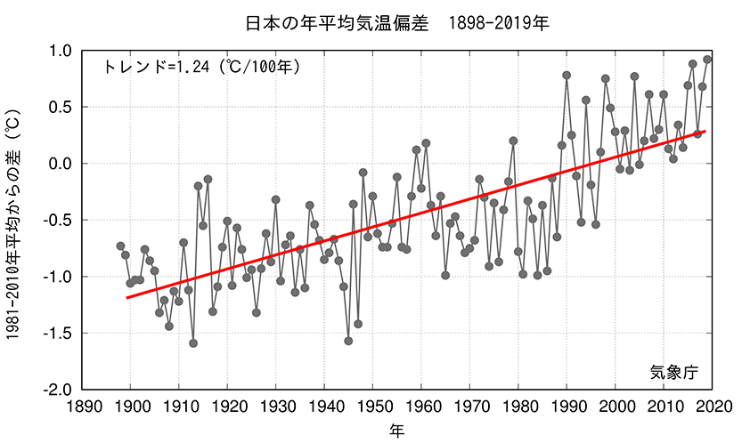 ※ This site shows the trend of long-term changes (red line in the figure) along with the observed values.