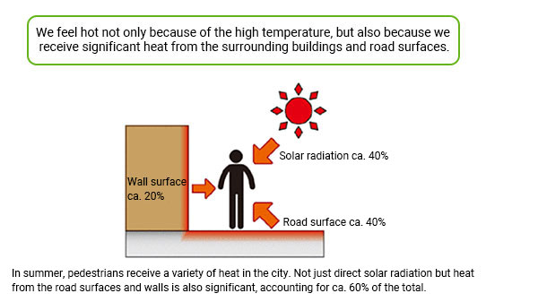 - Adaptation: As can be seen from the data provided by the Ministry of the Environment, the source of heat in the summer is not limited to direct solar radiation, but also the accumulated radiant heat from the walls and ground (figure below)