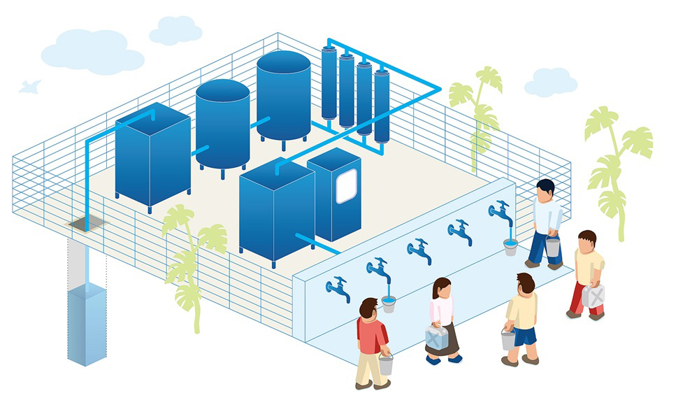Mitsubishi Chemical Aqua Solutions (formerly Wellthy Corporation) is a pioneer and leading company in the business of making groundwater drinkable with our ground water membrane filtration system. As of December 2021, we have delivered our system to over 1,300 locations in Japan, including hospitals, hotels, and commercial facilities. Outside Japan, we provide optimal water treatment systems that meet local needs to ensure safe drinking water, not limiting our methods to groundwater utilization or membrane filtration technology. So far, we have installed slow sand filtration system that requires no power in rural areas of Kenya and membrane filtration system in urban areas with electric supply to convert surface water into drinkable water. Our water treatment systems are equipped with our original remote monitoring system (WeLLDAS™), which helps to optimize maintenance and management operations by checking the operational status of water treatment systems installed within and outside of Japan, responding to water quality fluctuations, and utilizing accumulated data.