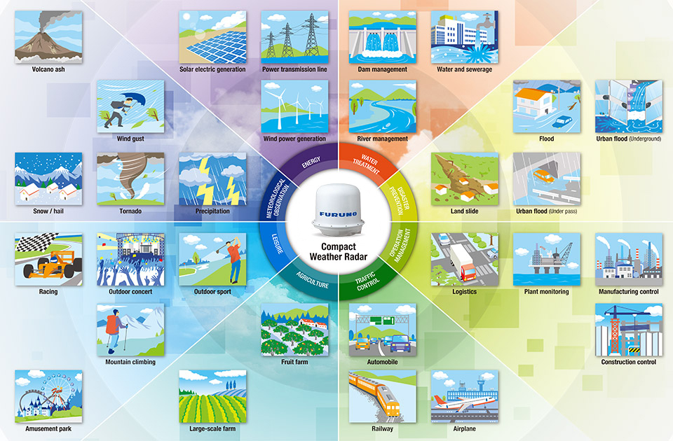 As extreme weather events, such as damage caused by weather disasters become more frequent and extreme across the world due to the effects of climate change, there is an urgent need for the society to protect lives and assets from sudden disasters including river flooding, urban flooding, and landslides. FURUNO ELECTRIC CO., LTD., will provide local weather observation solutions to contribute to the realization of a safe and secure society.
