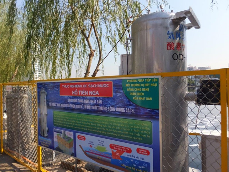 As part of a project to develop markets in emerging countries by the Ministry of Economy, Trade and Industry (METI), we conducted a purification test for Lake Tinga in Haiphong City, Vietnam (Figures 3 and 4). A large amount of wastewater from the adjacent residential and commercial facilities flowed into the lake, causing problems such as the occurrence of blue-green algae, putrid odor, and anaerobic mud due to poor oxygenation.