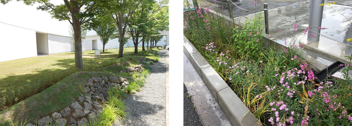 “Rainscape®” is a green infrastructure technology that solves urban flooding problems while utilizing the versatility of nature. The above-and under-ground water storage areas will function as "rainwater storage and infiltration space" during heavy rains to control peak water flow. The aboveground area can also function as a multifunctional green space at other times, creating an attractive landscapes and enhancing biodiversity. The features of this technology are as follows: