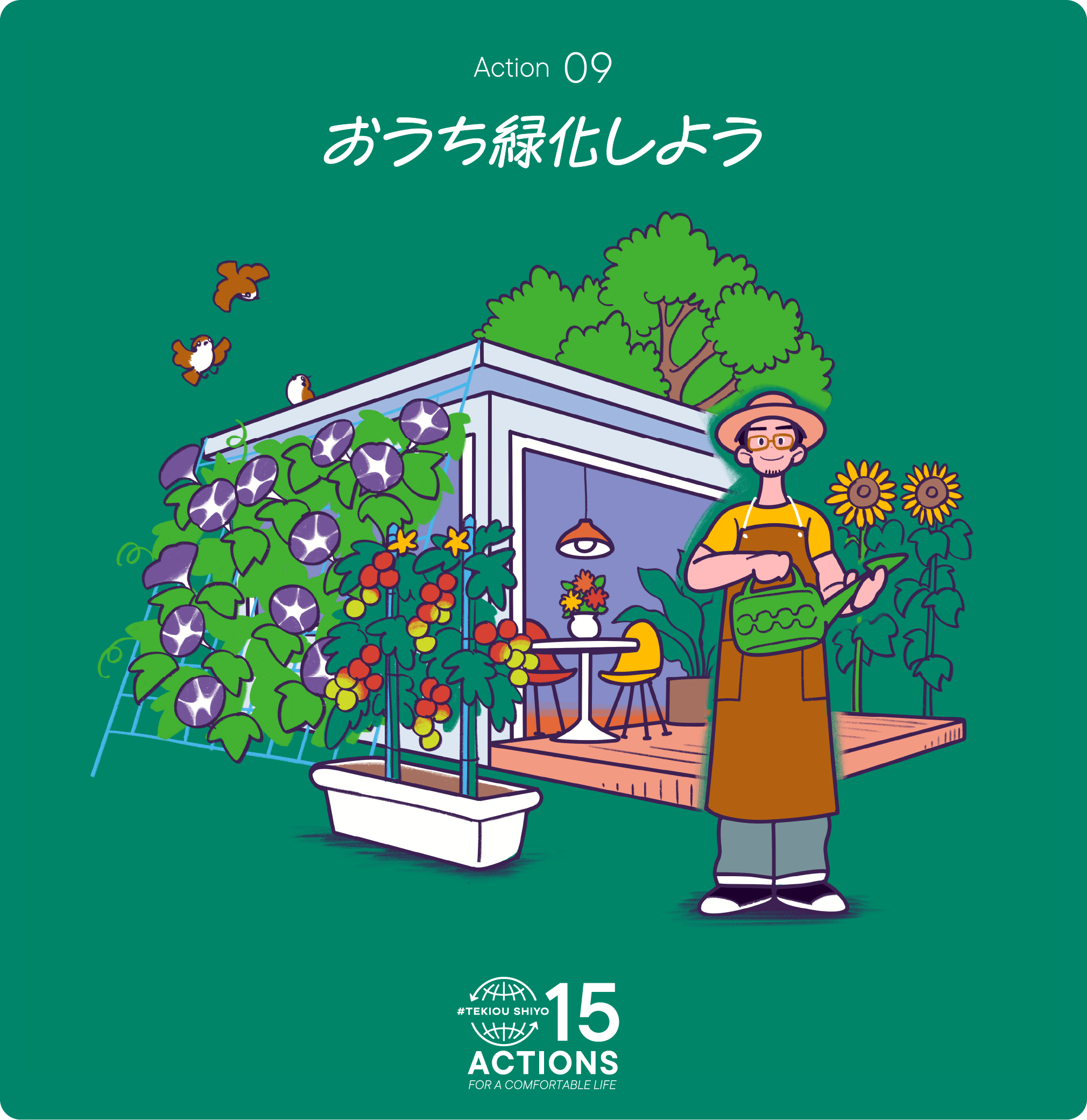 「観葉植物を置く」「グリーンカーテンをつくる」。これらは単なるオシャレなインテリアではなく、気候変動に対応するための立派な工夫です。たとえばグリーンカーテンは、直射日光を遮りながら、植物が水分を蒸発させることで、部屋の温度を最大1.7度も下げる効果があります。街全体の緑が増えることでヒートアイランド現象の軽減にもつながります。つまり、"オシャレ"と"気候変動への適応"は同時にかなえられるのです。