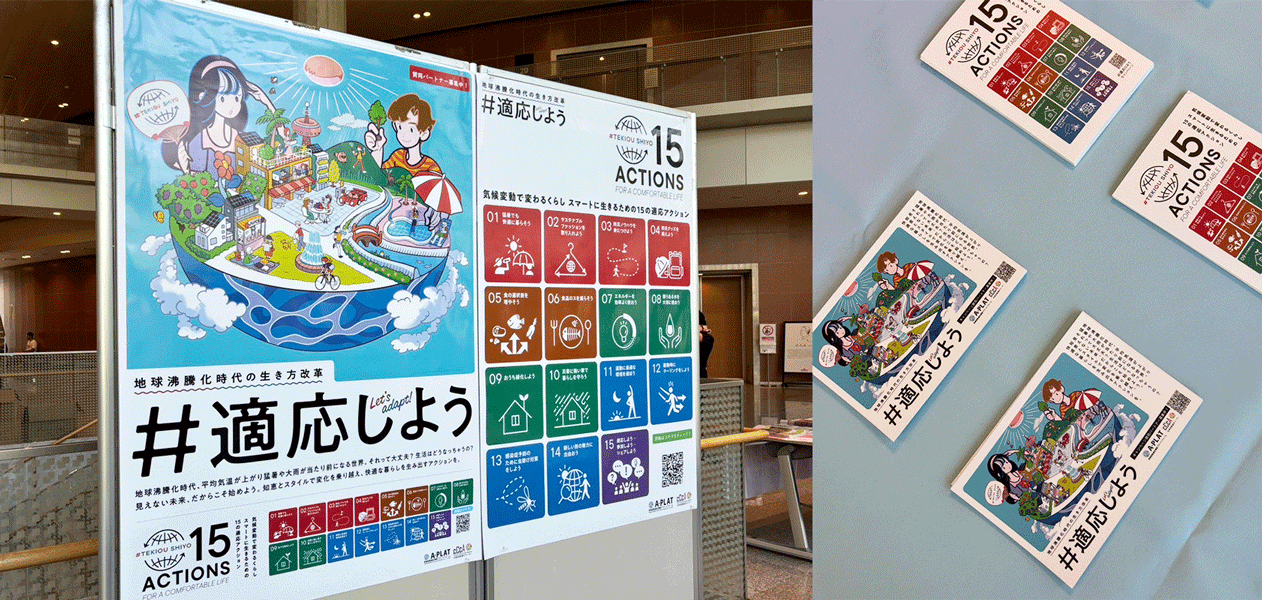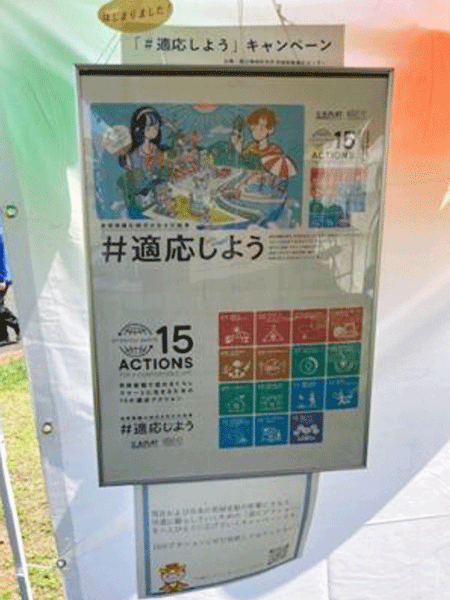 高知県地域気候変動適応センター主催イベント「~気候変動適応啓発イベント「こんなミライ、キミならどうする?」~」に出展し、「15の適応アクション」を紹介するポスターを展示しました。