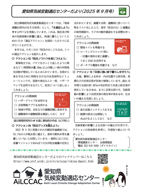 静岡県気候変動適応センター「ニュースレター第8号」に、やいづエコ市民塾において15 の「適応アクション」を活用した講義開催について掲載いただきました。