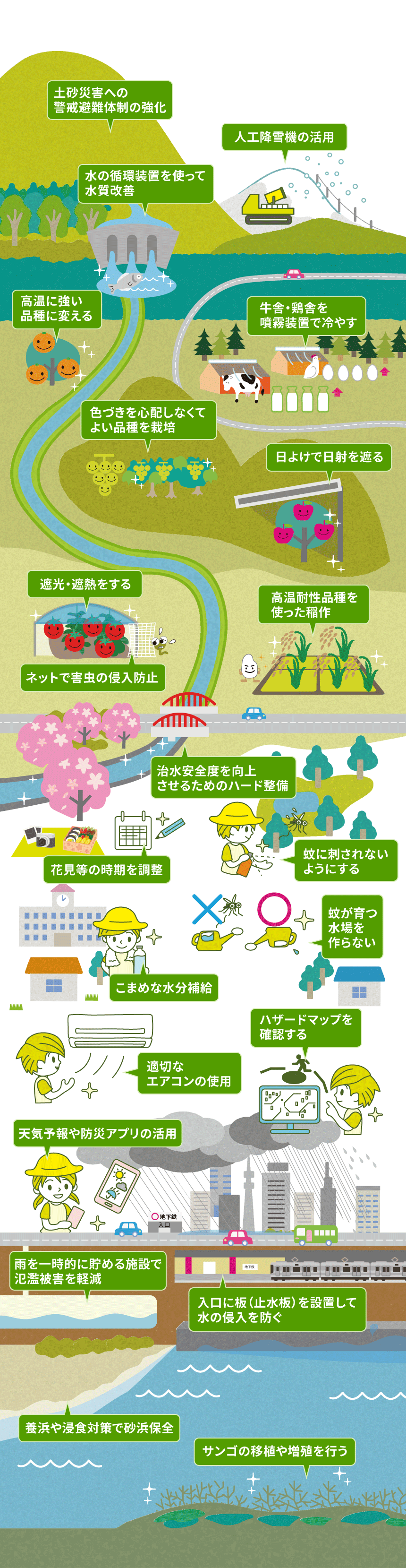 適応策は身の回りで既に取り組まれています。