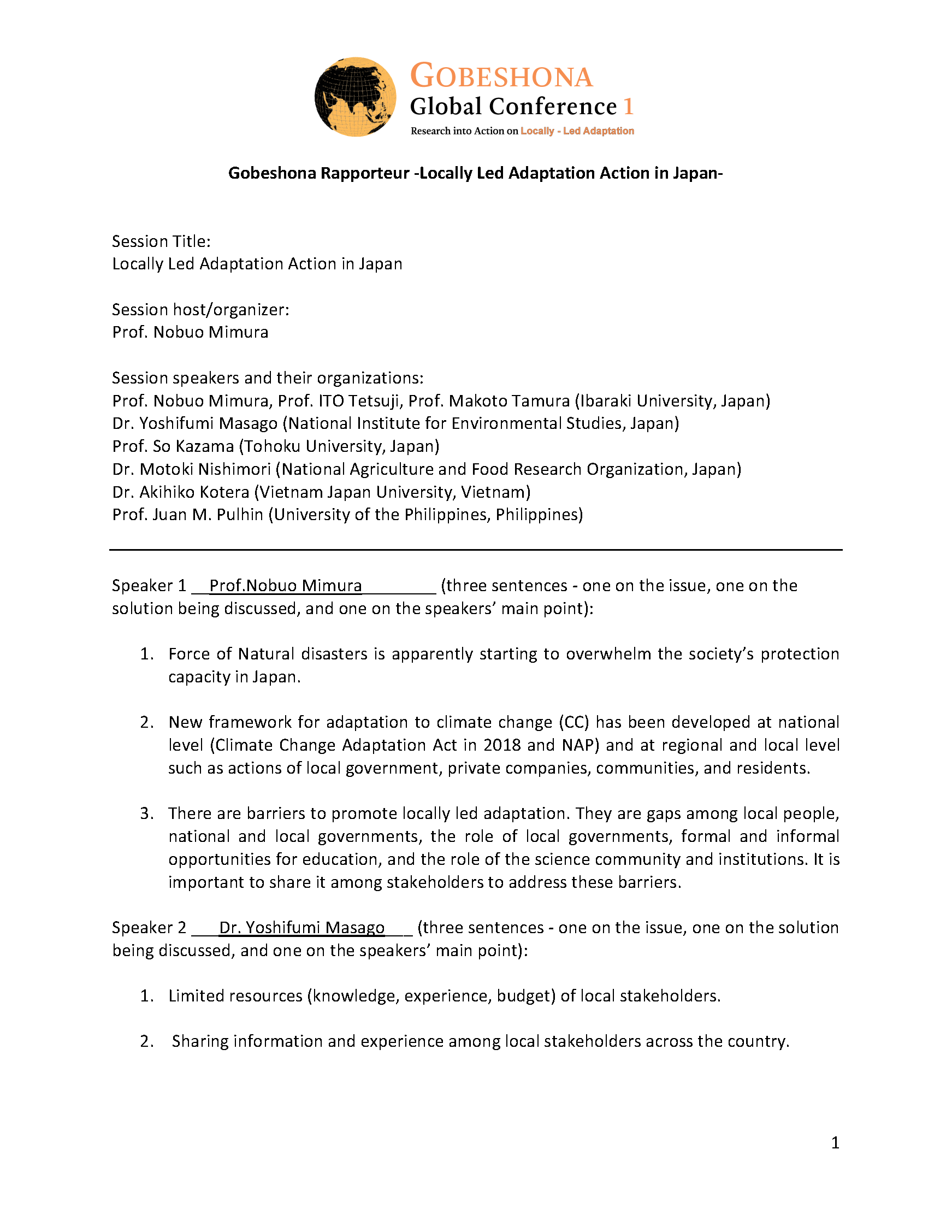 1) Introduction to the session by Prof. Nobuo Mimura(Ibaraki University, GLEC)