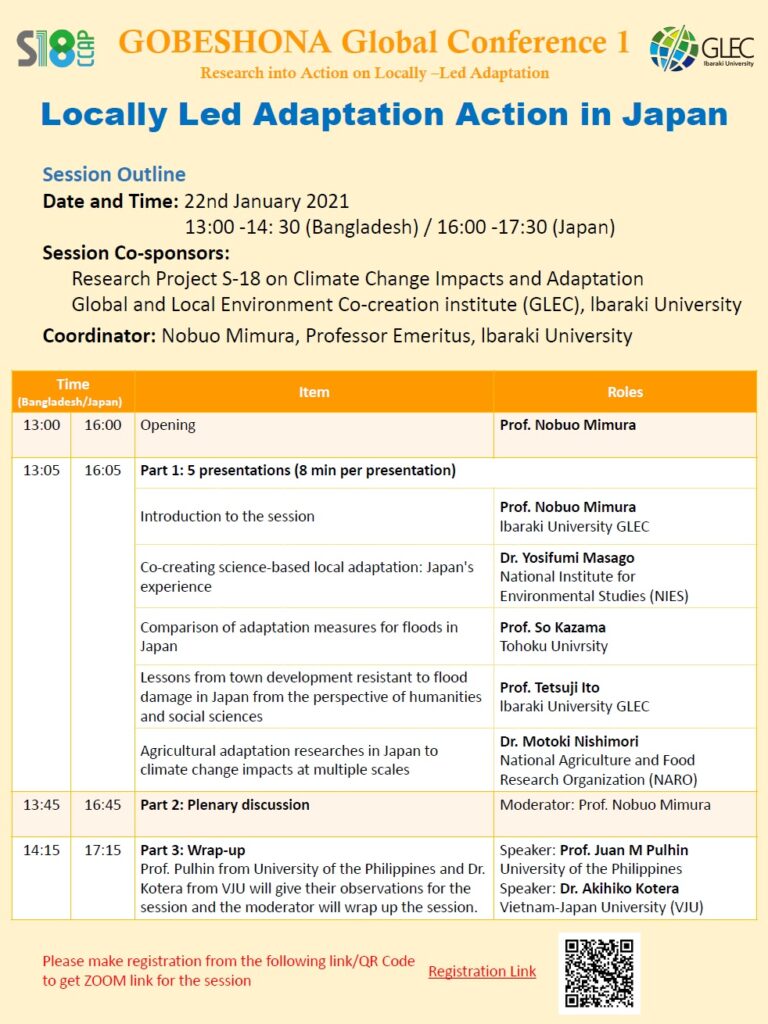 We will have session ‘Locally Led Adaptation Action in Japan’ for Gobeshona Global Conference 1.