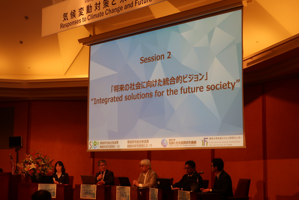 セッション2「将来の社会に向けた統合的ビジョン」では、多岐にわたる分野の4名の研究者が登壇し、統合的なビジョンの中で気候変動対策をどう位置づけ、進めていくかという大局的かつ中長期的な視点から議論が交わされた。