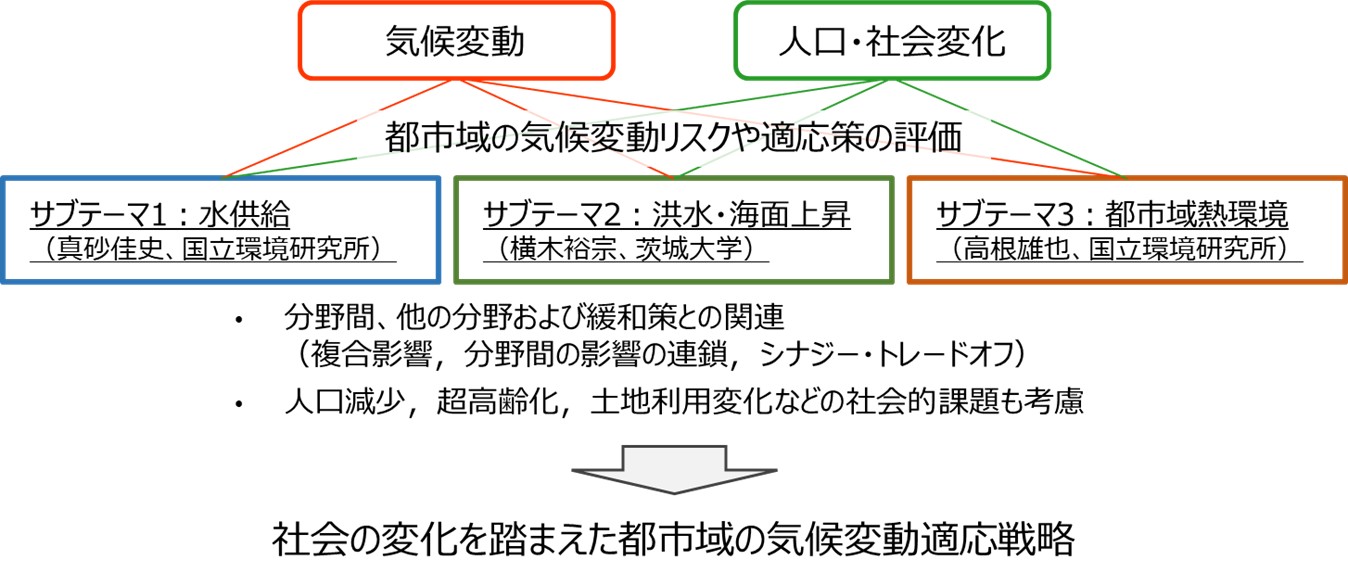 - 水供給、洪水・海面上昇、暑熱関連リスクについて、社会・経済面の変化を考慮して気候変動影響を予測する。
