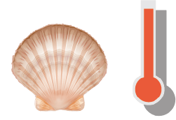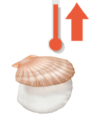 日本近海では過去100 年間に平均約1℃水温が上昇しているが、冷水性二枚貝のホタテガイは水温25℃以上の日が続くとへい死の危険性が高まる。