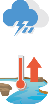 気温の上昇により、河川や湖沼などの内水面の水温も上昇し、変温動物である魚類の生理状態は環境水温の影響を受ける。また降水パターンの変化(短時間強雨、長雨等)は生息環境の悪化の要因となる。