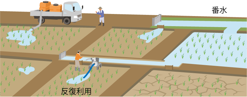農家の人は番水(節水のための配水管理)や地区内の反復利用を行いそれでも用水が不足する場合は用水補給(応急の井戸掘削等)などを行い調整を図るが、多大な負担を伴う。