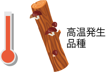 種によって主に子実体(きのこ)が発生する温度帯が異なり、高温発生品種、中温発生品種、低温発生品種に分けられる。九州地域では現在、中温発生の品種に主流が移ってきている。今後の気温上昇により、更に栽培品種を高温発生の品種に移行させる必要が考えられる。