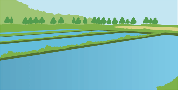 上流域の森林を保全して降雨時の流出を抑制し、水田や池、河川からの涵養機能を保全して流域の健全な水循環を確保する(環境省 2021)。