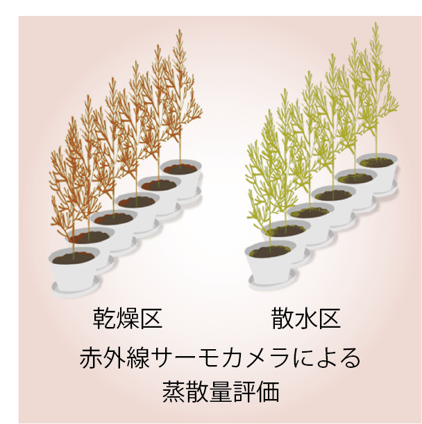 育種素材作出の為の形質評価(高温や乾燥ストレス耐性に関わる特性を多数の系統について評価すること)を効果的に進める為、新たな評価手法(赤外線サーモカメラによる蒸散量評価及び乾燥ストレス耐性や雄花着花性等の早期判定に資するマーカー等)が開発されている。
