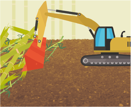 重機で根茎まで除去出来れば土地利用転換が可能となる。