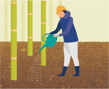 電動ドリルやドリルビットで穴を開け、分注器やスポイトなどを用いて注入(投入)する。竹稈と切株では再生を抑制する効果には差があり、特に地上部を伐採してから切株へ注入した方が再生を抑制する効果が高い。