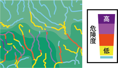 気象庁は、「洪水警報の危険度分布」について、地図上に5段階で色分け表示した情報を提供している(3時間先まで予測)。指定河川洪水予報の発表対象ではない中小河川も含め、早い段階から洪水災害発生の危険度の高まりを一目で確認できるようにしており、危険度の高まりをプッシュ型で通知するサービスも行われている。