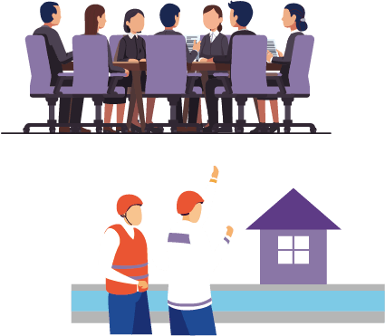近年の水災害による甚大な被害を受受け、施設能力を超過する洪水が発生することを前提に、社会全体で洪水に備える「水防災意識社会」の再構築(社会資本整備審議会 2020)を一歩進め、気候変動の影響や社会状況の変化(人口減少、インフラの老朽化)などを踏まえ、様々な関係者が協働して行う流域治水への転換を推進し、防災・減災が主流となる社会を目指す。
