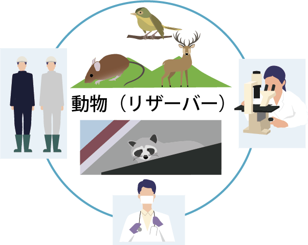 国内において野生動物由来人獣共通感染症対策としての野生動物管理が進まない要因として、根拠となる法制度の不足、管理目的ごとに管理主体や監督行政部署が異なること、野生動物の個体数管理が野生動物種毎の特定計画に基づいて行われること、野生動物の生息地と管理主体の管理スケールとの不一致、適切な管理手法が構築されていないことなど(岡部他2020より引用)が挙げられており、関係機関や分野を横断した協同の重要性が指摘され、ワンヘルス*の取組も進められている。