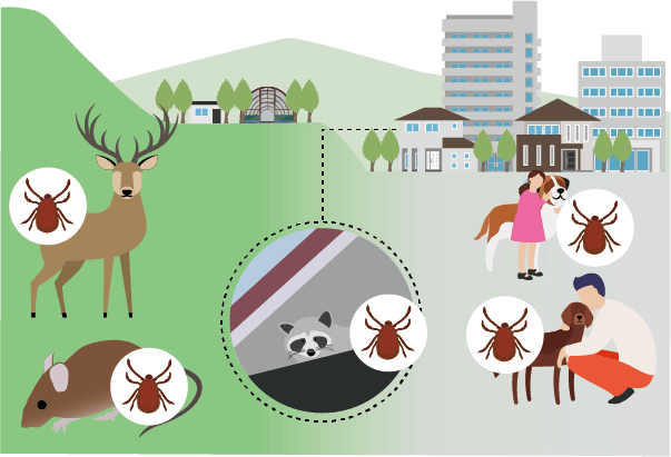 ①マダニ:野生動物を適正な密度に管理することでマダニの密度を抑え、ヒトとマダニとの接触リスクを一定水準以下に抑えることができる。野生動物管理はこれまで増えすぎ て害獣化したシカやイノシシ、生態系被害を引き起こす外来生物などを対象に実施されてきたが、まずはこれらの既存の制度を活用することでマダニ対策の目標が達成されるかどうかを検討すべきである。(以上岡部ら2019より引用)