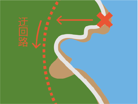 沿道区域の斜面崩壊の恐れのある地上部樹木を伐採し、撤去する。