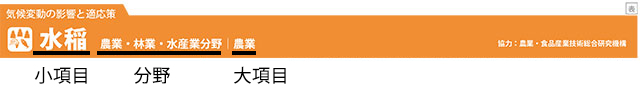- インフォグラフィックの各項目は、気候変動影響評価報告書(詳細)の小項目、もしくは細項目(ここでは小項目内に記載されている各項目を指しています)を対象に作成しています。