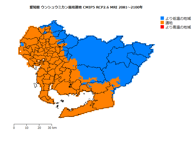県域面積に対する栽培適地(気温条件から判断した潜在的な適地)面積の比率(分布率)の将来予測