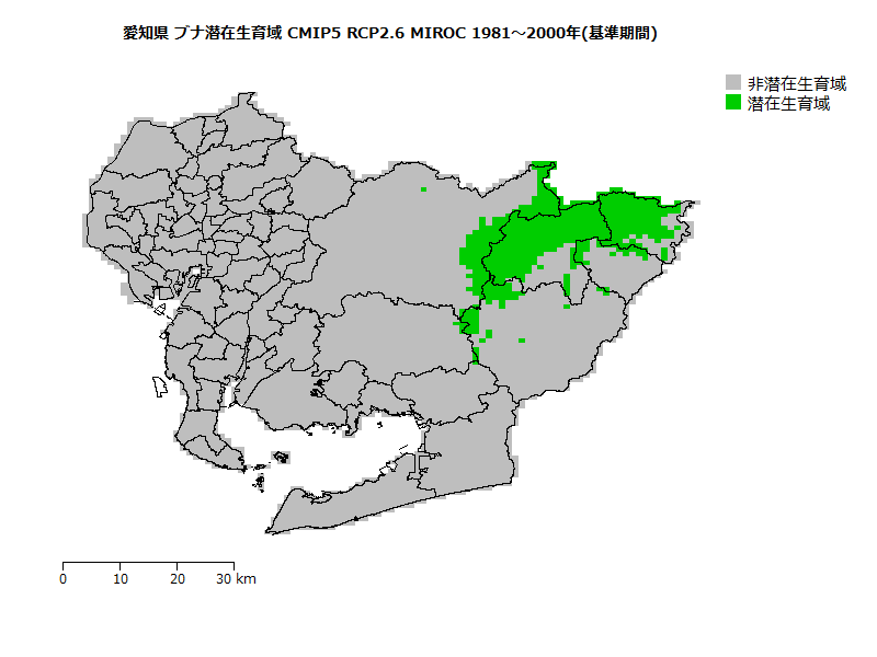 ブナ潜在生育域面積の将来変化予測