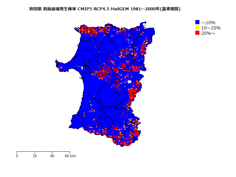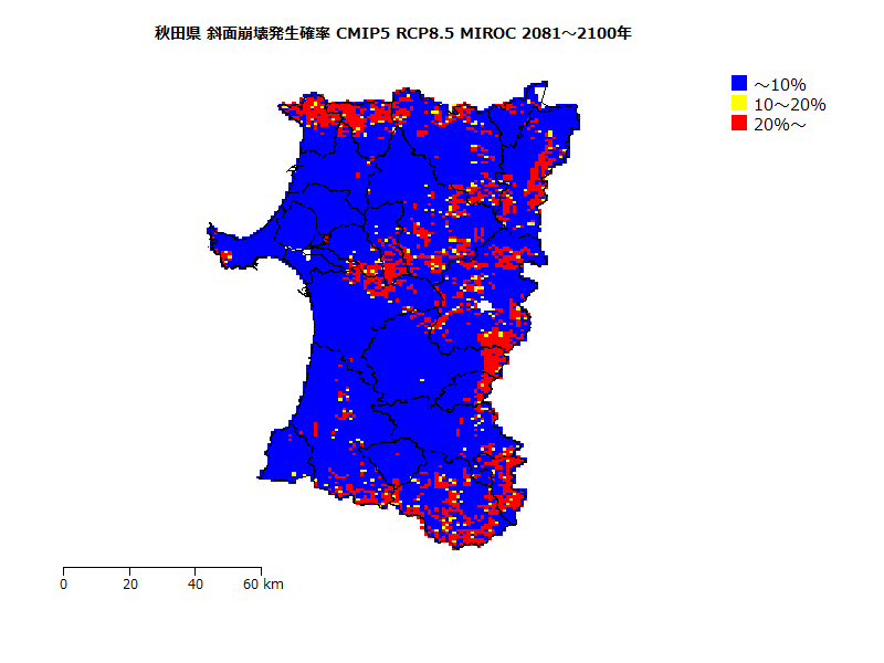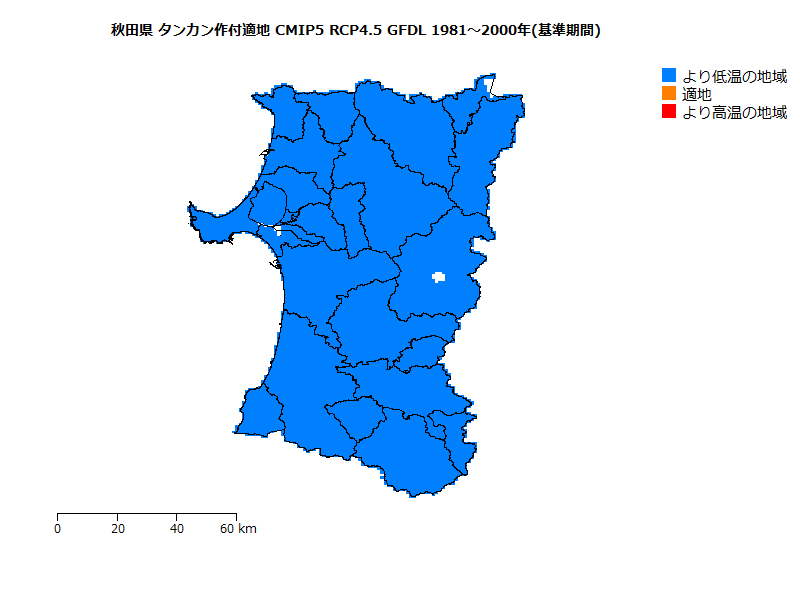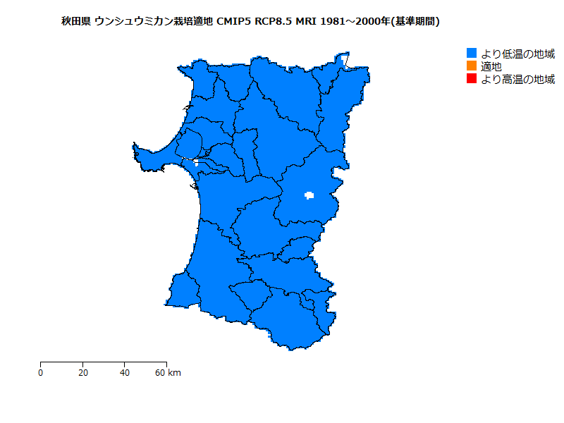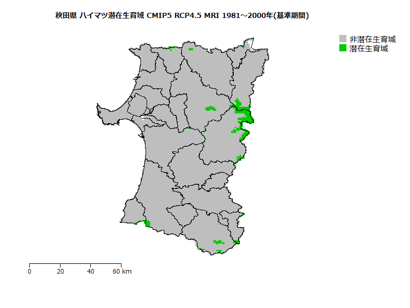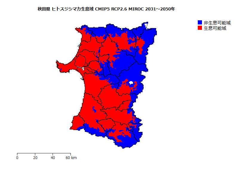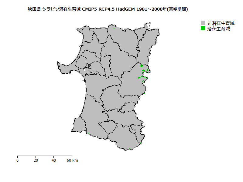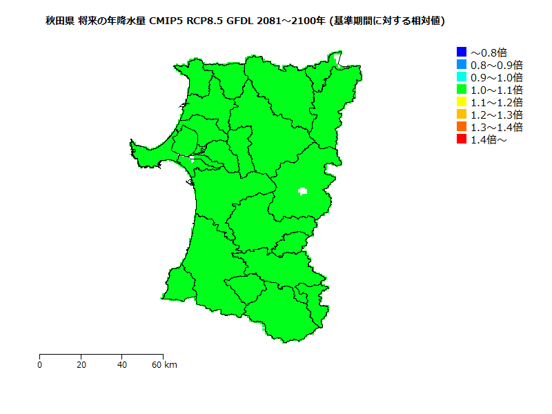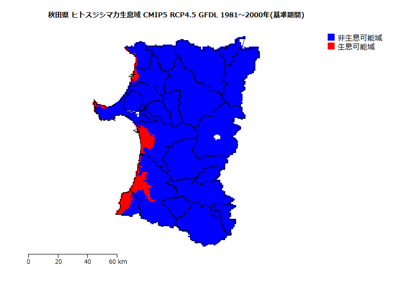 ヒトスジシマカの生息域の将来予測(基準期間に対する相対値)