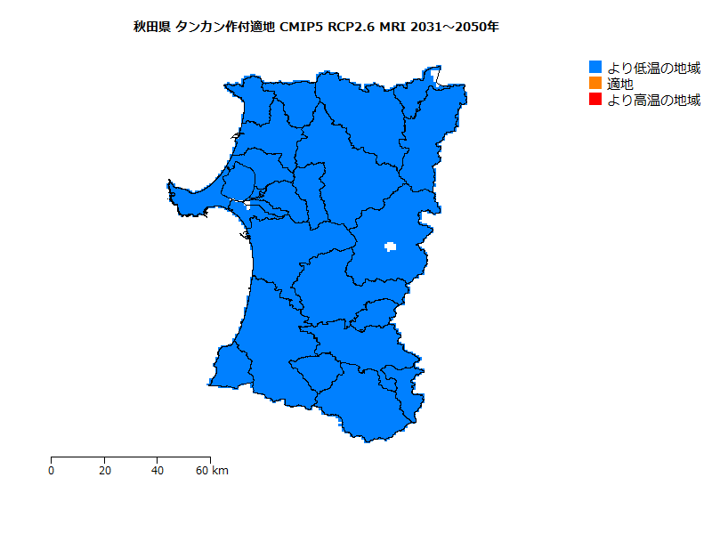 県域面積に対する栽培適地(気温条件から判断した潜在的な適地)面積の比率(分布率)の将来予測