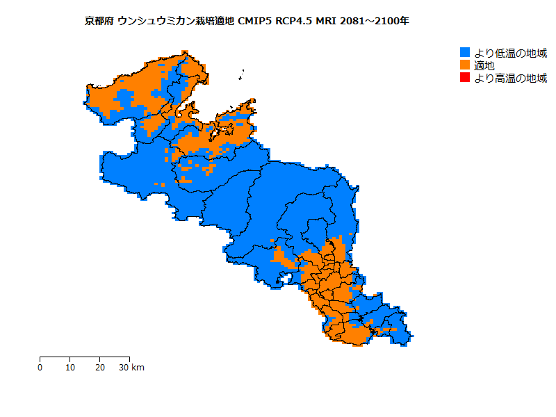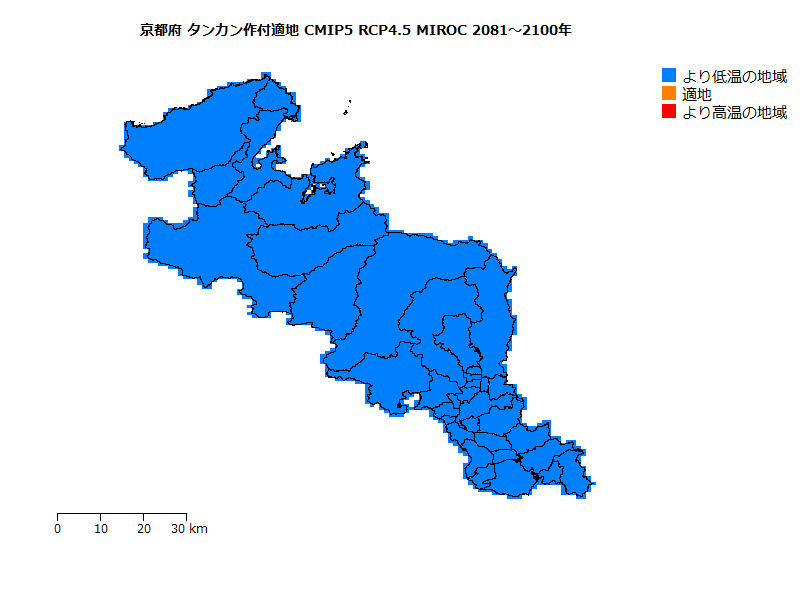 栽培適地を年平均気温および日最低気温のみで評価しているが、日射量や降水量等も関係するとされている。