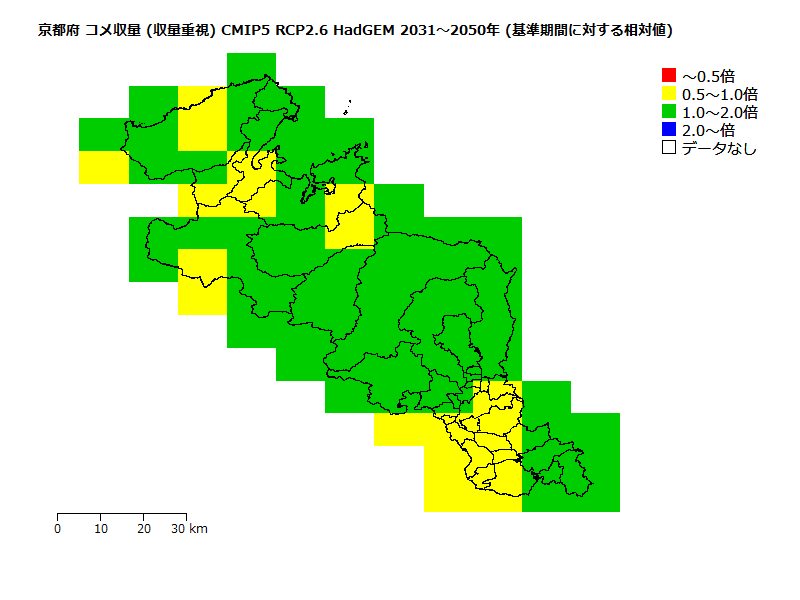 気候変動に伴う水需給や病虫害発生形態、台風などによる大規模災害の発生の変化などといった間接的に影響を与える要因は考慮していない。