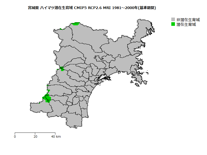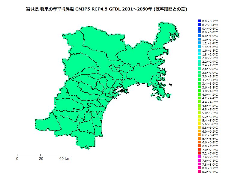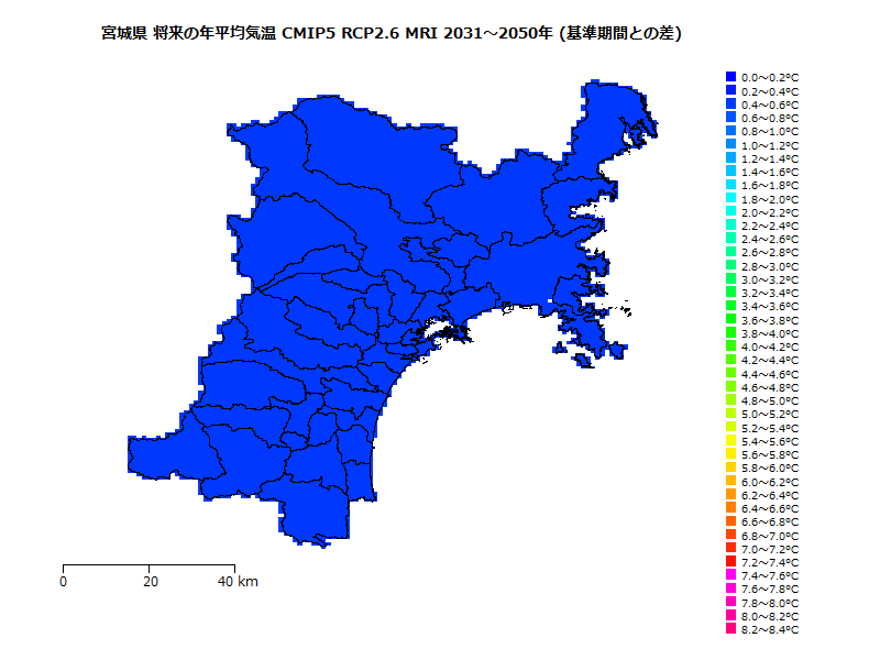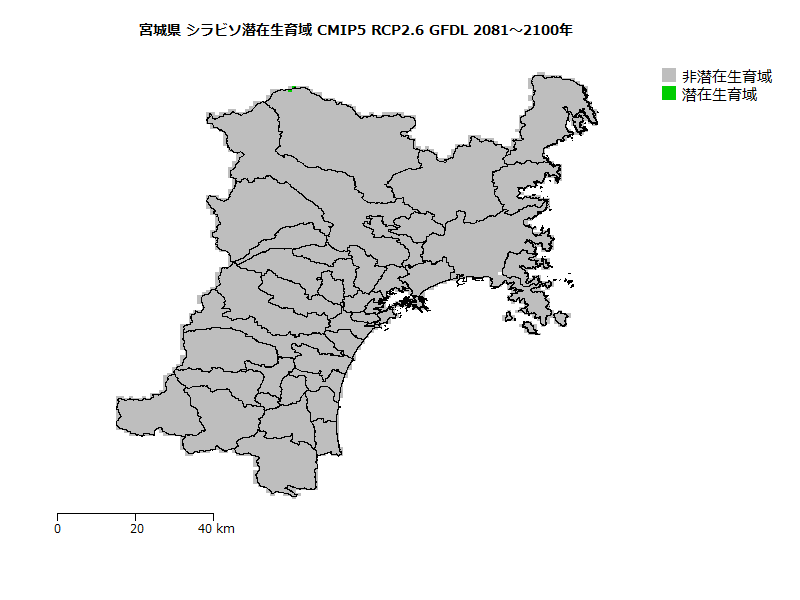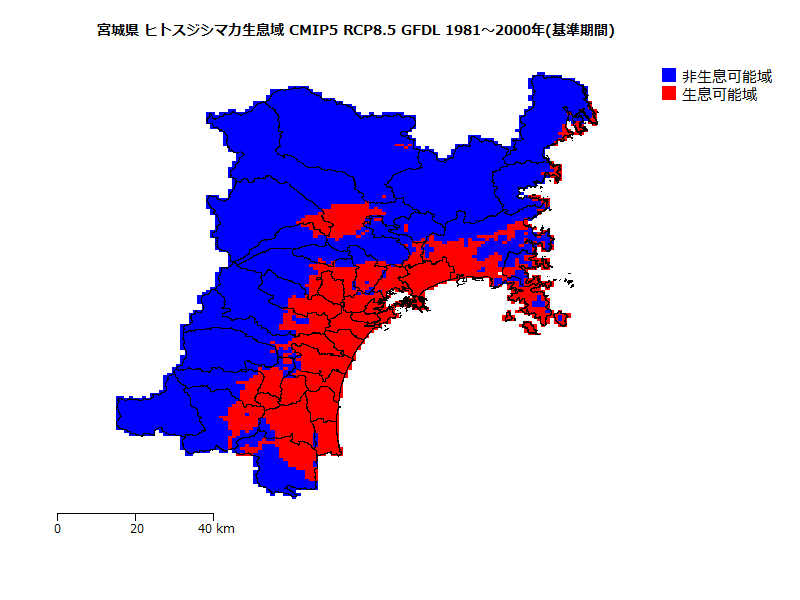 ヒトスジシマカの生息域の将来予測(基準期間に対する相対値)