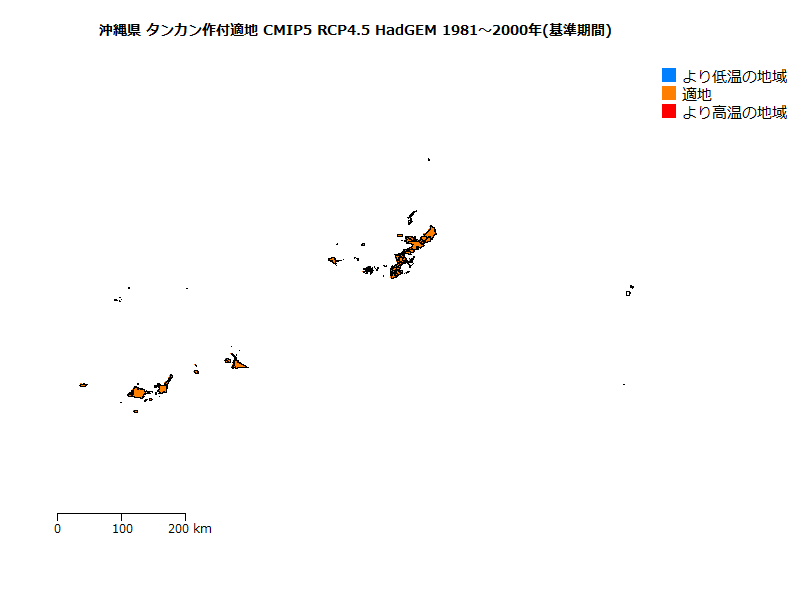 県域面積に対する栽培適地(気温条件から判断した潜在的な適地)面積の比率(分布率)の将来予測