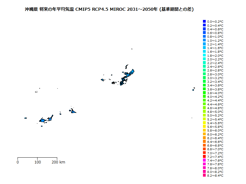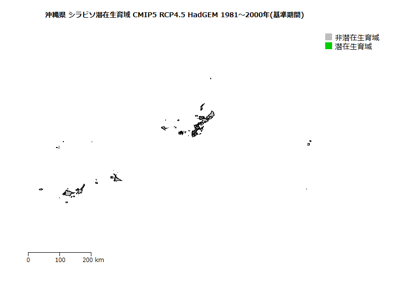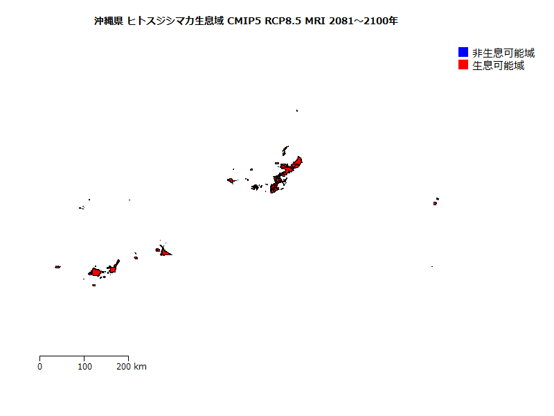 ヒトスジシマカの生息域の将来予測(基準期間に対する相対値)