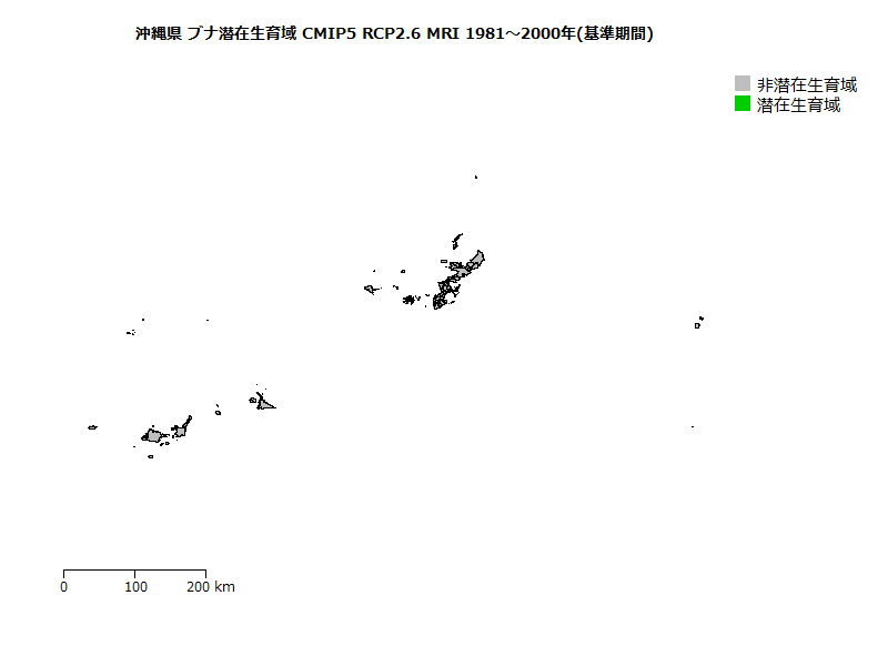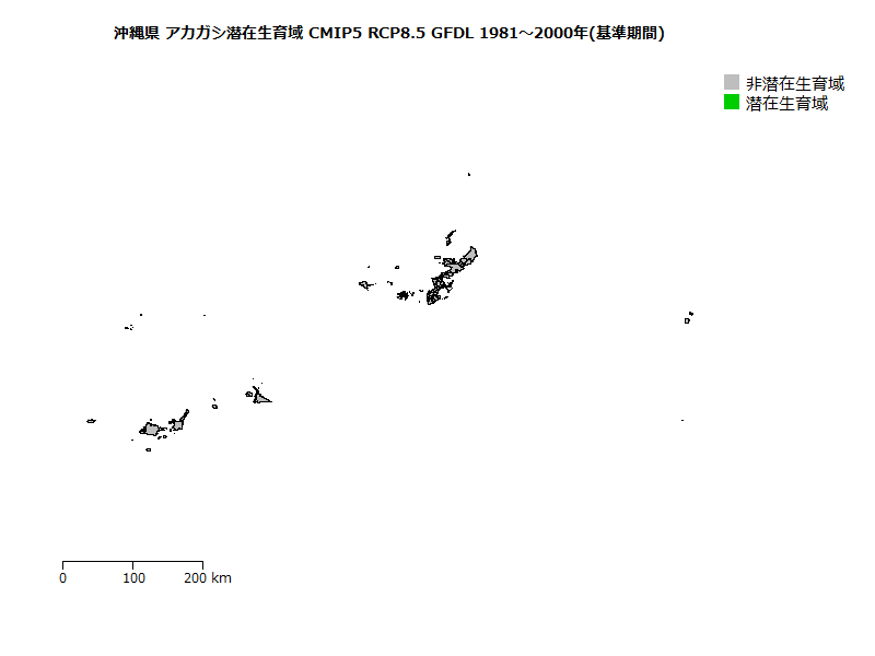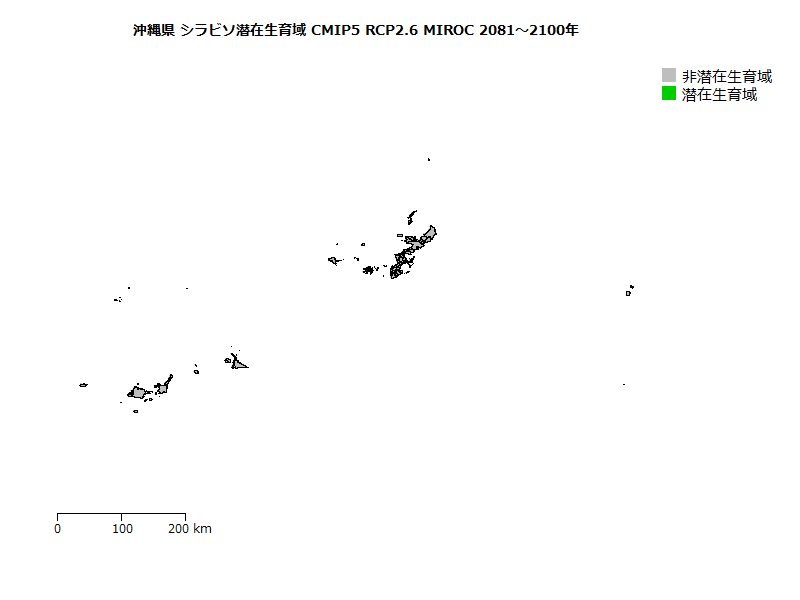 アカガシ潜在生育域面積の将来変化予測