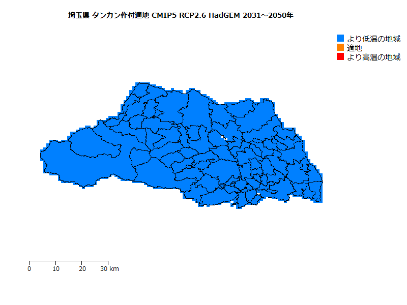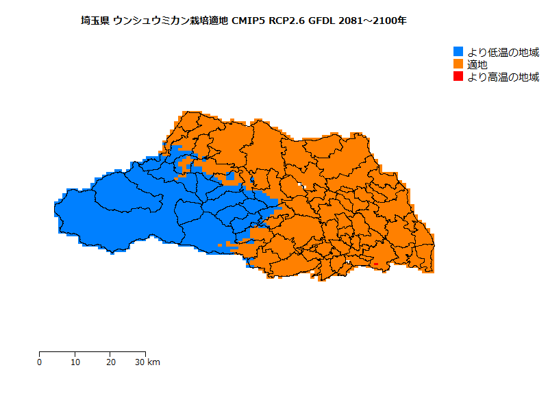 栽培適地を年平均気温および日最低気温のみで評価しているが、日射量や降水量等も関係するとされている。